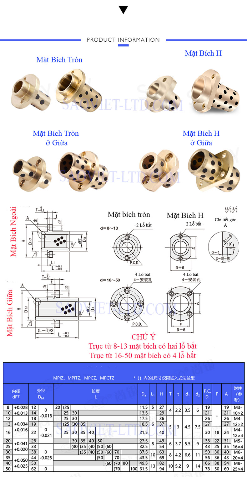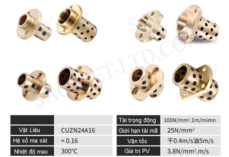 Bạc đồng Pushing free oil Kiểu MPCZ Không cần dùng dầu bôi trơn vẫn đảm bảo khả năng trơn trượt với hệ số ma sát thấp.