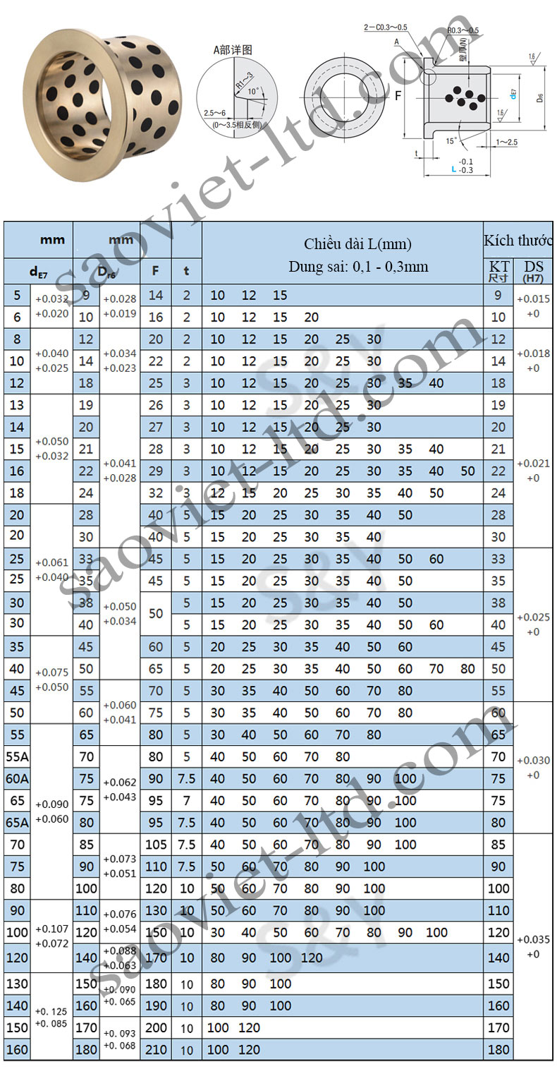 Bạc lót đồng thau tự bôi trơn trục máy kiểu JFB