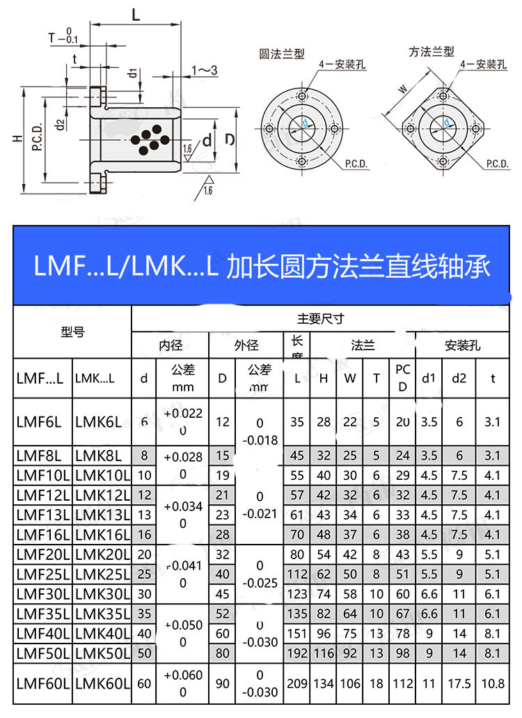 1. Hỗn hợp polytetrafluoroethylen (PTFE) và chì (Pb) 0,01 ~ 0,03mm, một vật liệu chống mài mòn, có thể tạo thành màng chuyển trong quá trình vận hành để bảo vệ trục ngược.