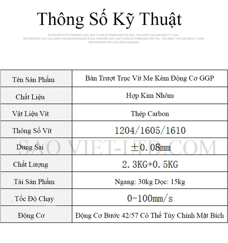Bảng Thông Số Kỹ Thuật Bàn Trượt Trục Vít Me Kèm Động Cơ GGP