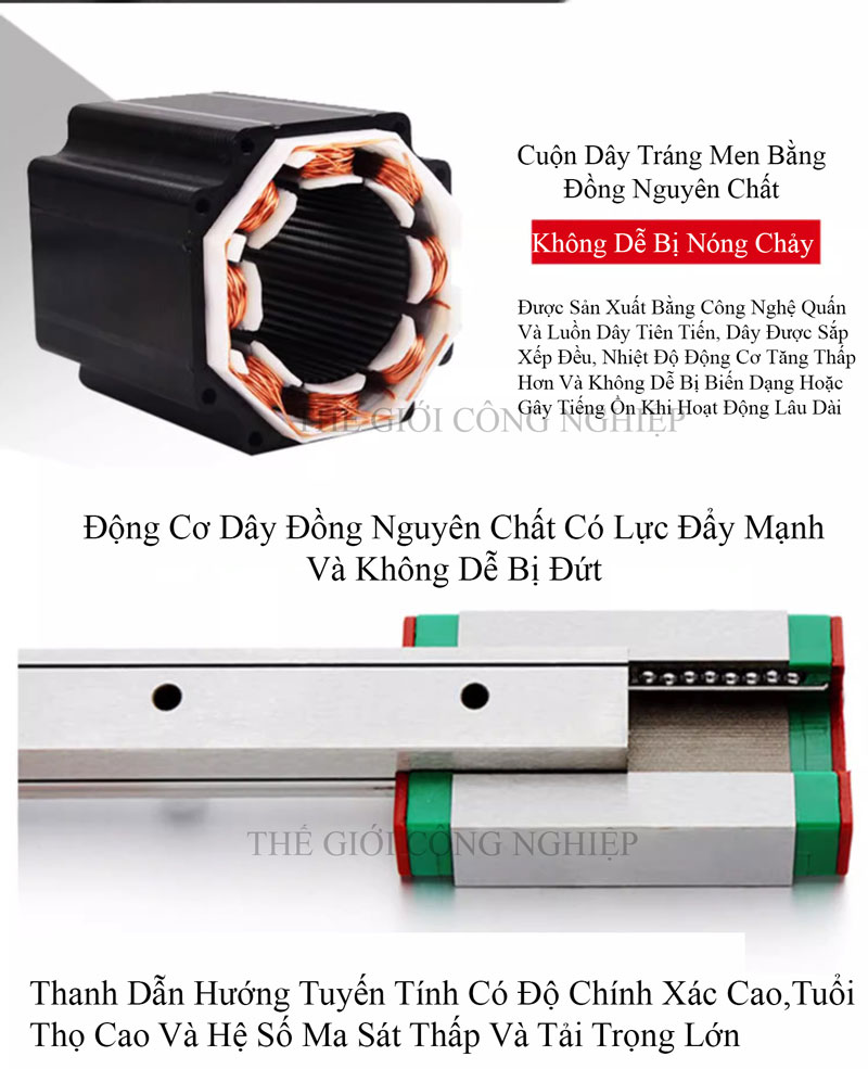 - Hiệu suất ổn định: Động cơ bước cung cấp mô-men xoắn đều đặn, giảm thiểu rung động.