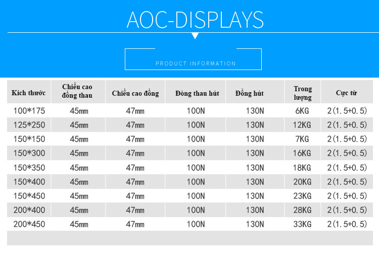 THÔNG SỐ KỸ THUẬT CỦA BÀN TỪ