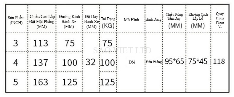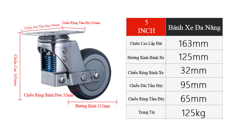 Tên Sản Phẩm: Bánh Xe Có Giảm Sóc 75 Kiểu Xoay