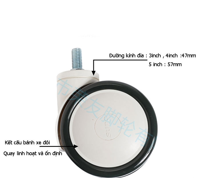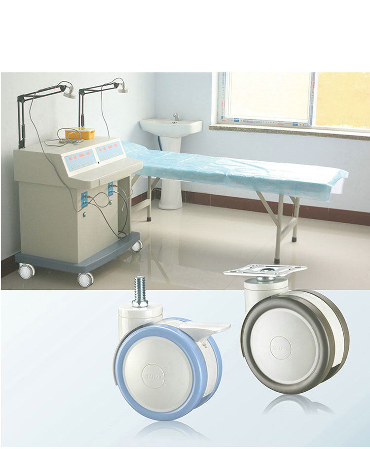 Bánh xe đẩy bệnh viện hãng SUPO cao cấp chịu tải trọng cao tiếng ồn thấp, vận hành nhẹ nhàng êm ái, thích hợp cho các xe đẩy bệnh viện đường kính có các kich cỡ bãnh xe từ, 3 inch (75mm), 4inch (100mm), 5inch (125mm), 6inch (150mm) kiểu cọc vít