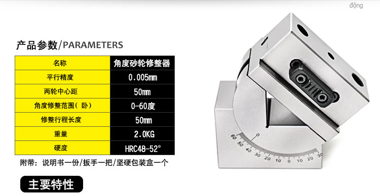 Áp dụng cho máy mài để điều chỉnh độ nghiêng của bánh mài song song, sản phẩm có tỷ lệ, phạm vi góc: 0-60 độ có thể điều chỉnh độ nghiêng của bánh mài của máy mài đã sửa đổi.