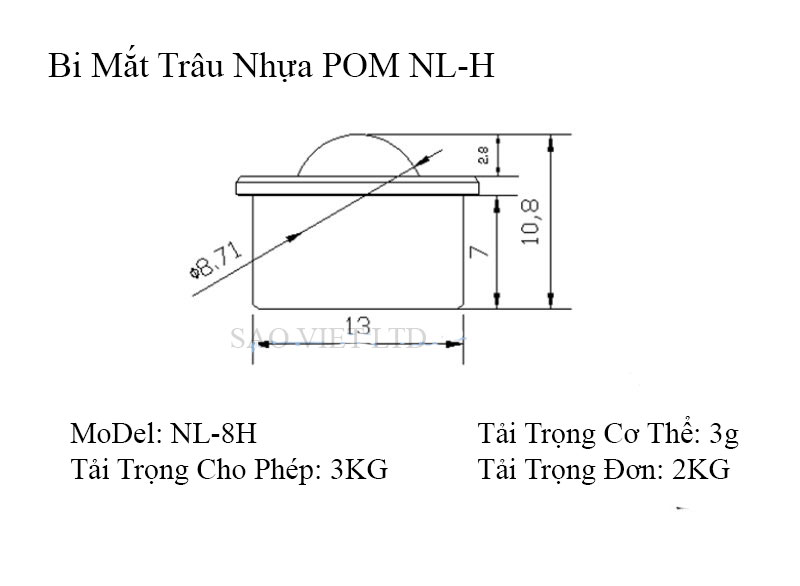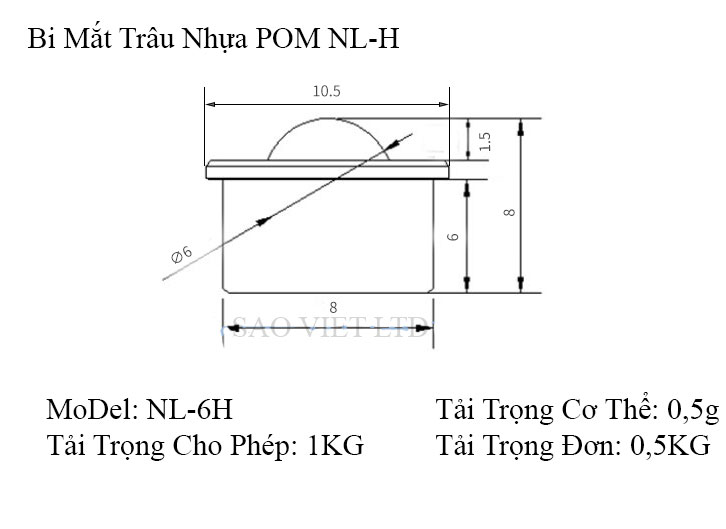 Bảng Thông Số Kỹ Thuật Bi Mắt Trâu Nhựa POM NL-H