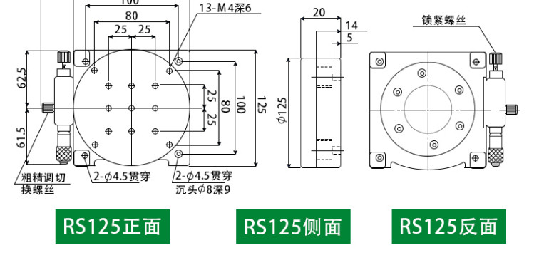 Bàn tinh chỉnh quang học bằng tay tuyến tính Trục R Kiểu RS/RSP