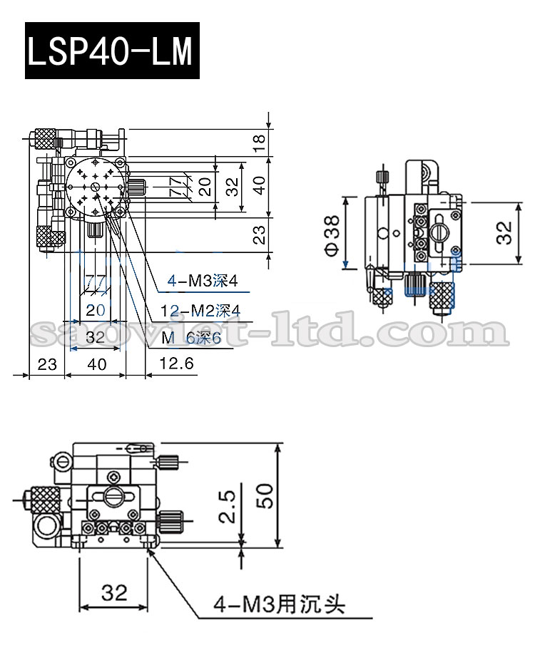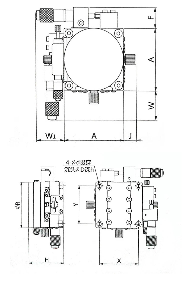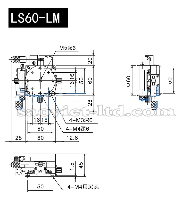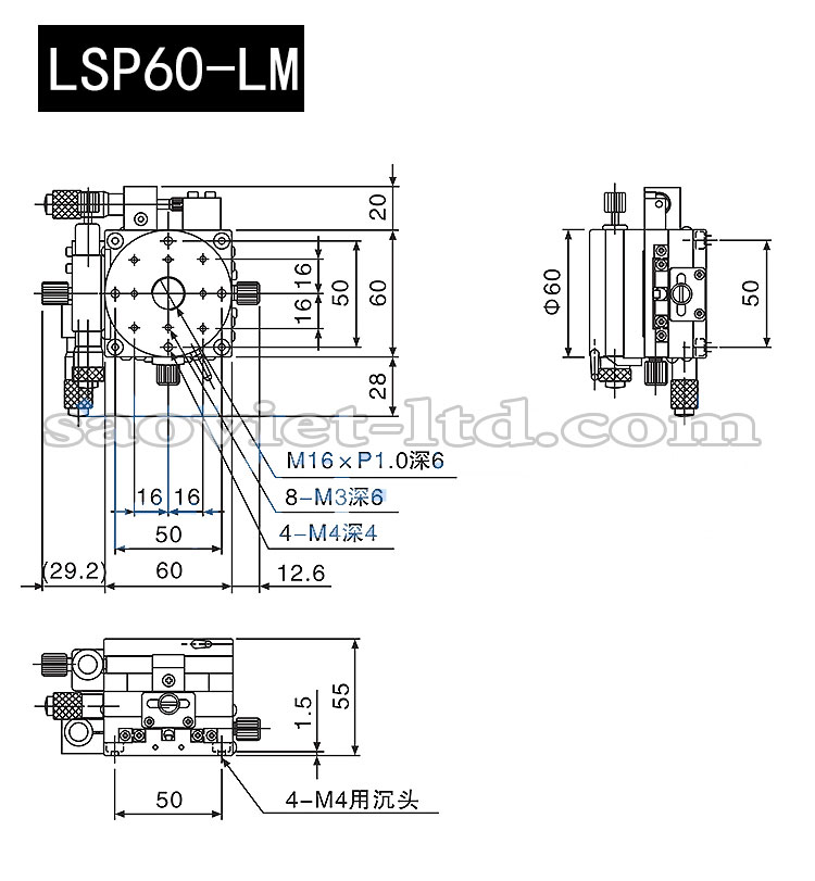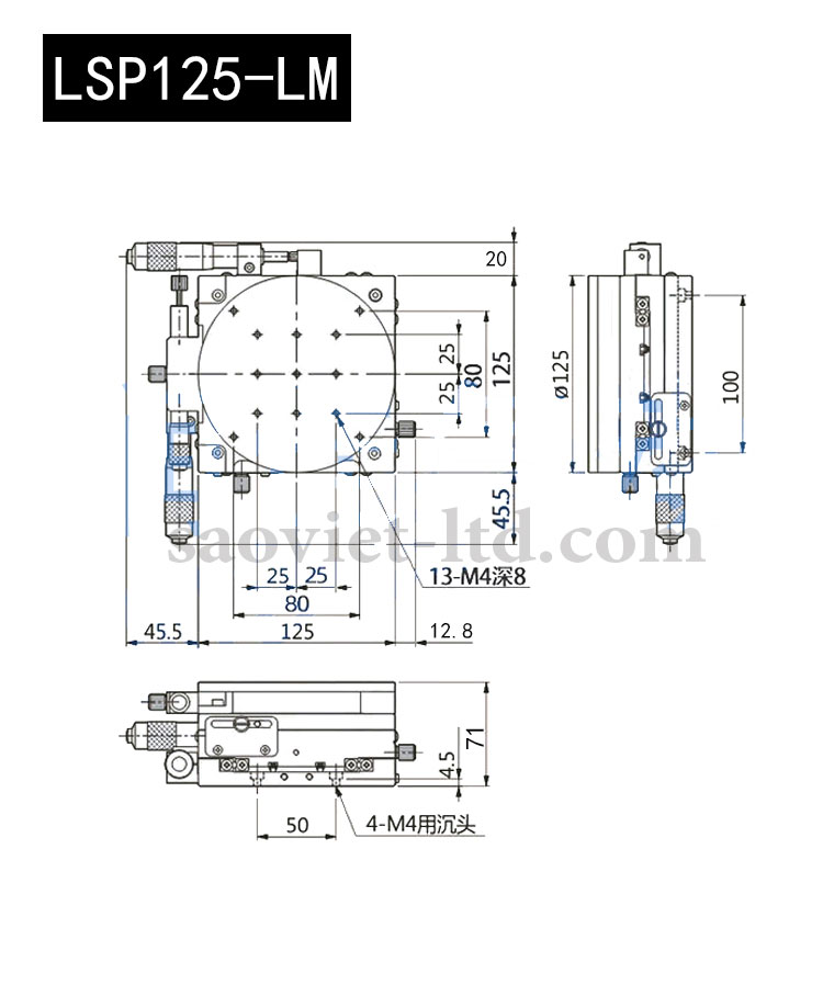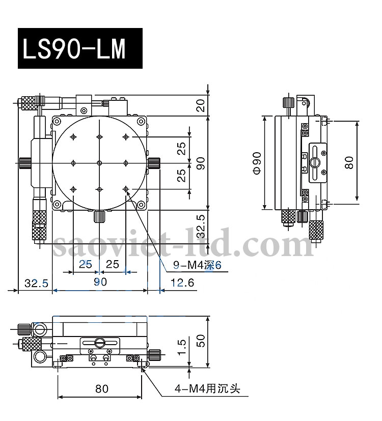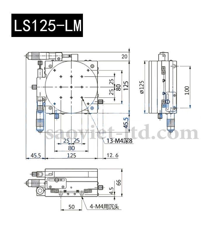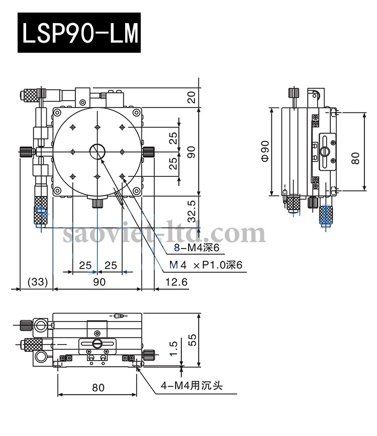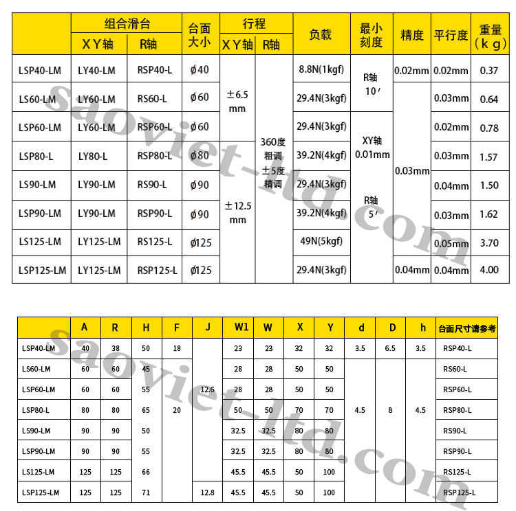 Bàn tinh chỉnh quang học bằng tay tuyến tính 3 hướng XYR Kiểu LS40, LS60, LS90, LS100, LS125 Độ chính xác cao LSP 40, LSP 60, LSP80, LSP90, LSP125