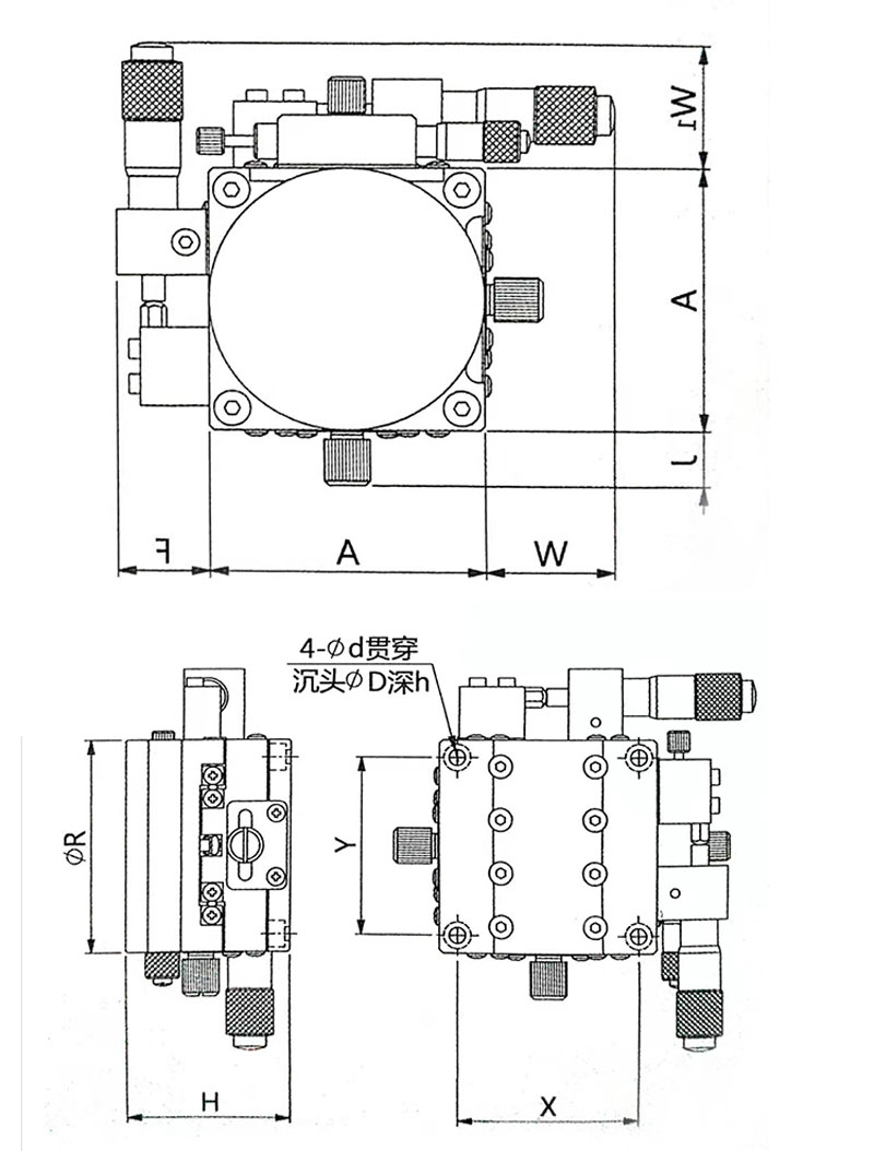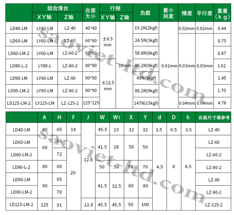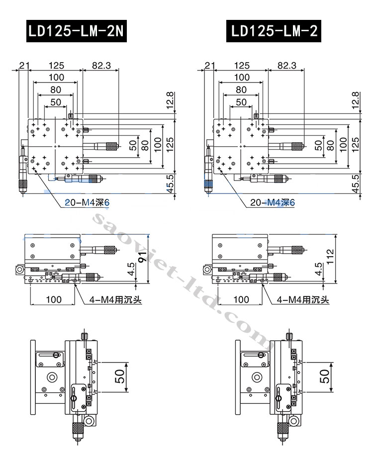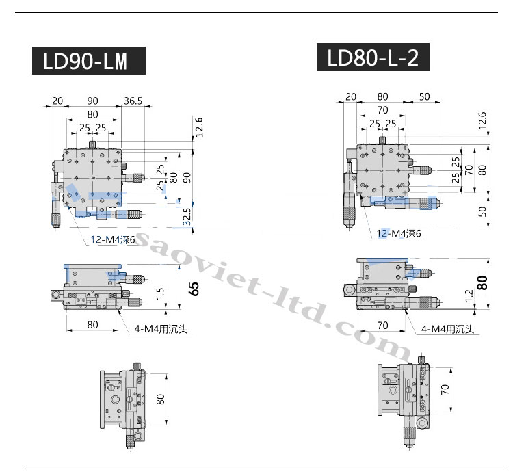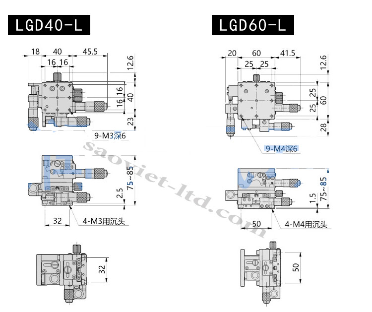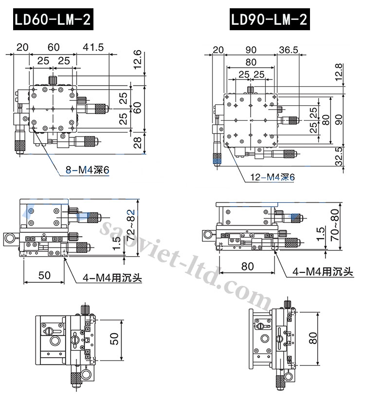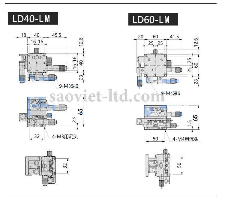 Bàn tinh chỉnh quang học bằng tay tuyến tính 3 hướng XYZ Kiểu LD40, LD60, LD80, LD90, LD125 Bằng Thép Không Gỉ độ chính xác cao