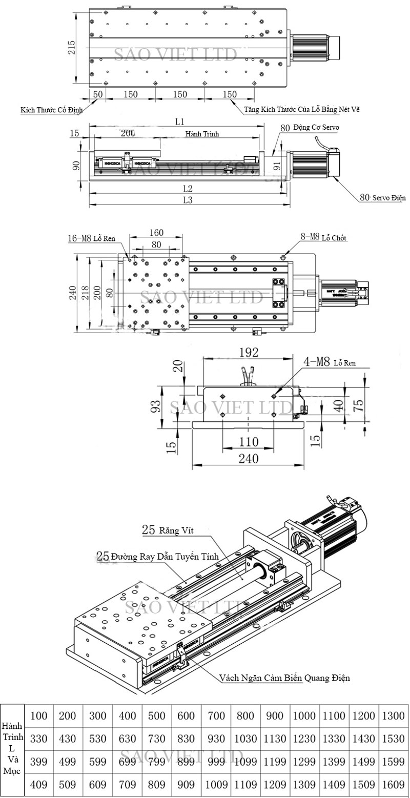 Bảng Thông Số Kỹ Thuật Bộ Bàn Trượt CNC KR250A