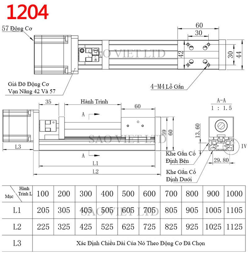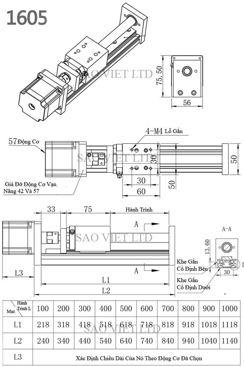 Bảng Thông Số Kỹ Thuật Bộ Bàn Trượt CNC KR30