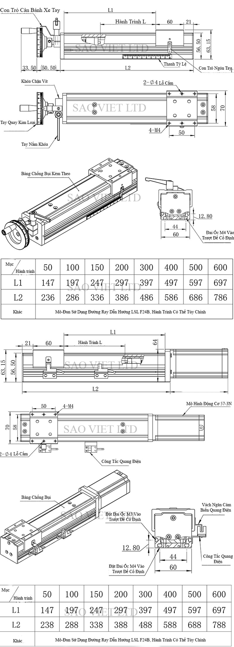 Bảng Thông Số Kỹ Thuật Bộ Bàn Trượt CNC KR60