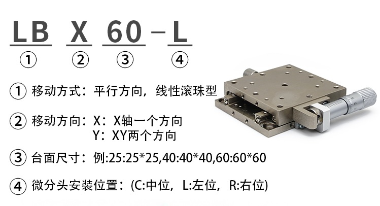 Bệ chuyển vị trục X bằng tay LBY25, LBY40, LBY60, LBY80, LBY100 Bằng Thép Không Gỉ độ chính xác cao