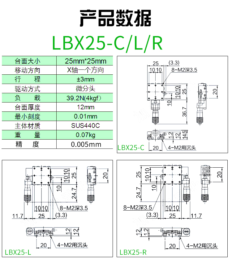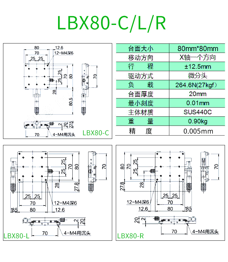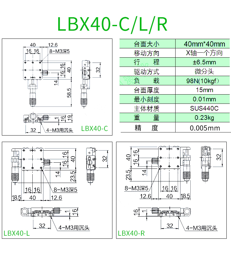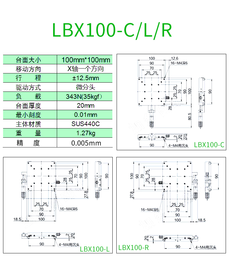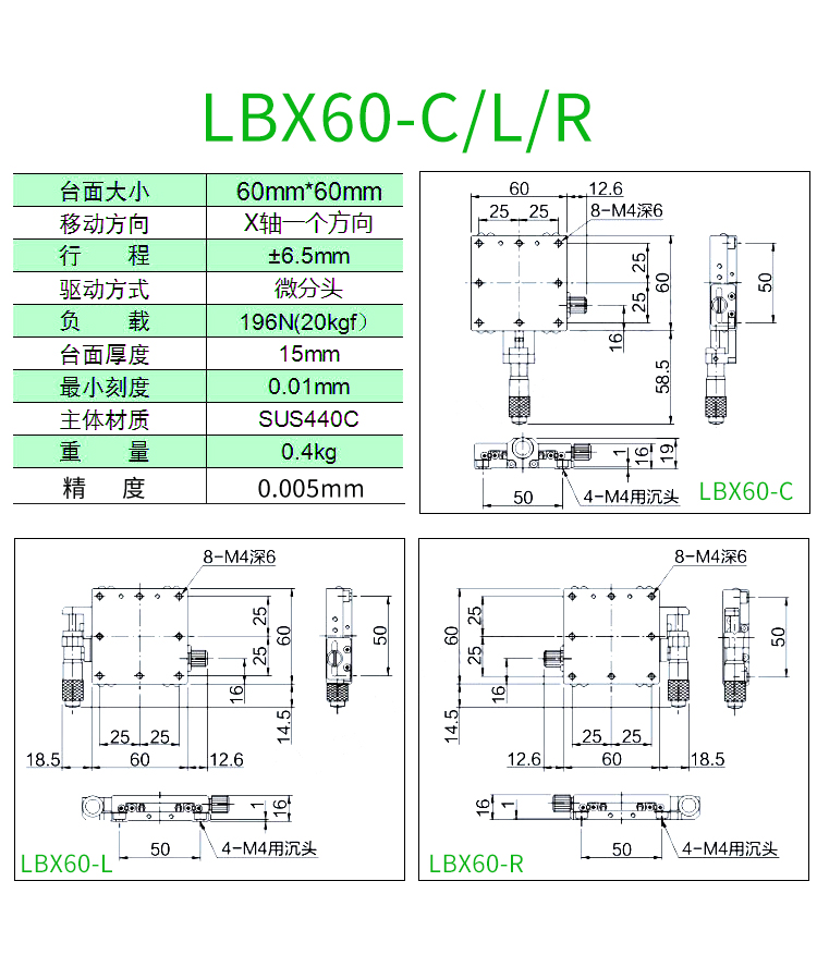 Bệ chuyển vị trục X bằng tay LBX25, LBX40, LBX60, LBX80, LBX100 Bằng Thép Không Gỉ độ chính xác cao