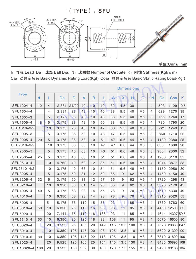 VÍT ME ĐAI ỐC KIẾU SFU 1204 1605 2005 2505, BỘ SẢN PHẨM GỒM