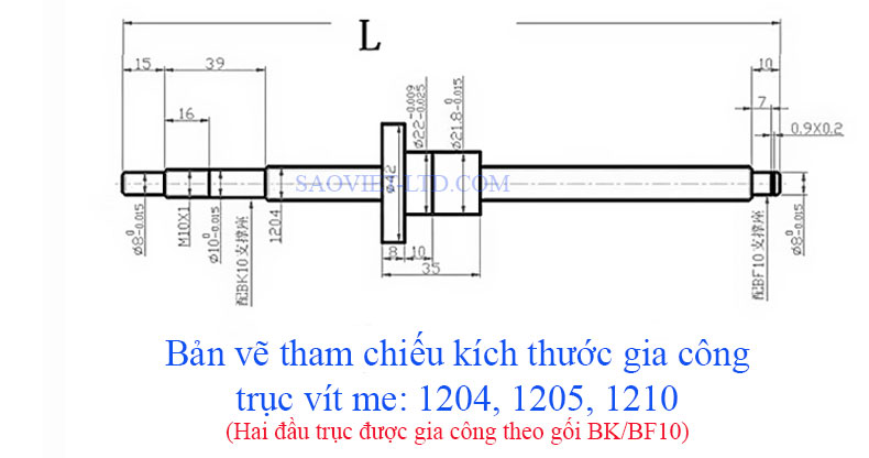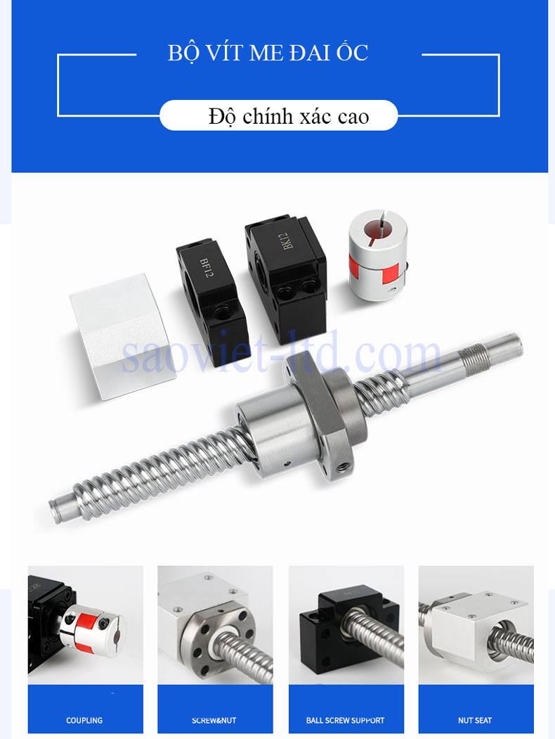 Bộ sản phẩm Đai ốc vitme SFU 1204 1605 2005 2505, chiều dài làm việc của vít me khác nhau từ: 300mm, 500mm, 600mm, 700mm, 800mm, 900mm, 1000mm.