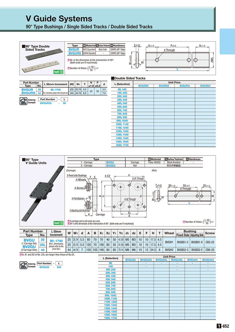 Bảng Thông Số Kỹ Thuật Bộ Dẫn Hướng Chữ V loại 90*