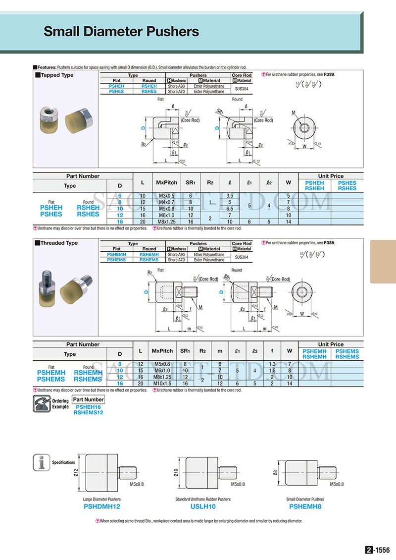 Bảng Thông Số Kỹ Thuật Bộ đẩy đầu xilanh bọc nhựa PU Ren Trong PSHEH