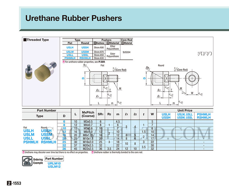 Bảng Thông Số Kỹ Thuật Bộ đẩy đầu xilanh bọc nhựa PU Ren Trong USSH