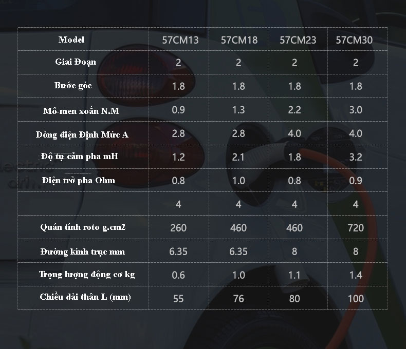THÔNG SỐ ĐỘNG CƠ BƯỚC 57CM