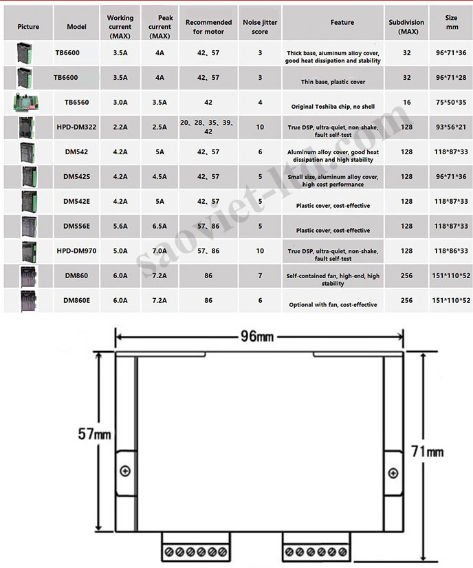 Mạch điều khiển động cơ bước DM542S cho khả năng điều khiển động cơ bước 2 pha với công suất tối đa lên tới 5A 48V. Mạch điều khiển động cơ bước DM542 có thiết kế vỏ hộp kim loại chắc chắn, bền bỉ, chống nhiễu với tản nhiệt lớn cho hoạt động ổn định hiệu suất cao. Driver DM542 sử dụng rộng rãi trong khắc máy, máy công cụ, máy móc bao bì CNC và yêu cầu độ phân giải cao.