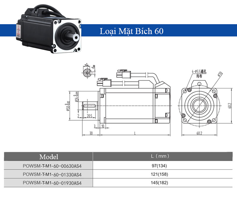 Bộ Động Cơ Servor Có Phanh 60W Size 60
