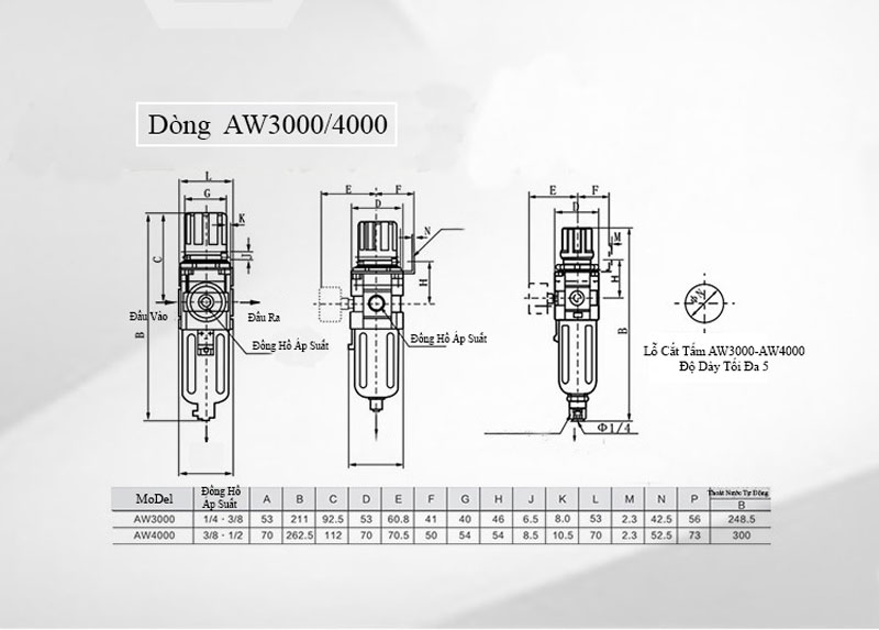Bảng Thông Số Bộ Lọc Điều Chỉnh Áp Suất SMC AW