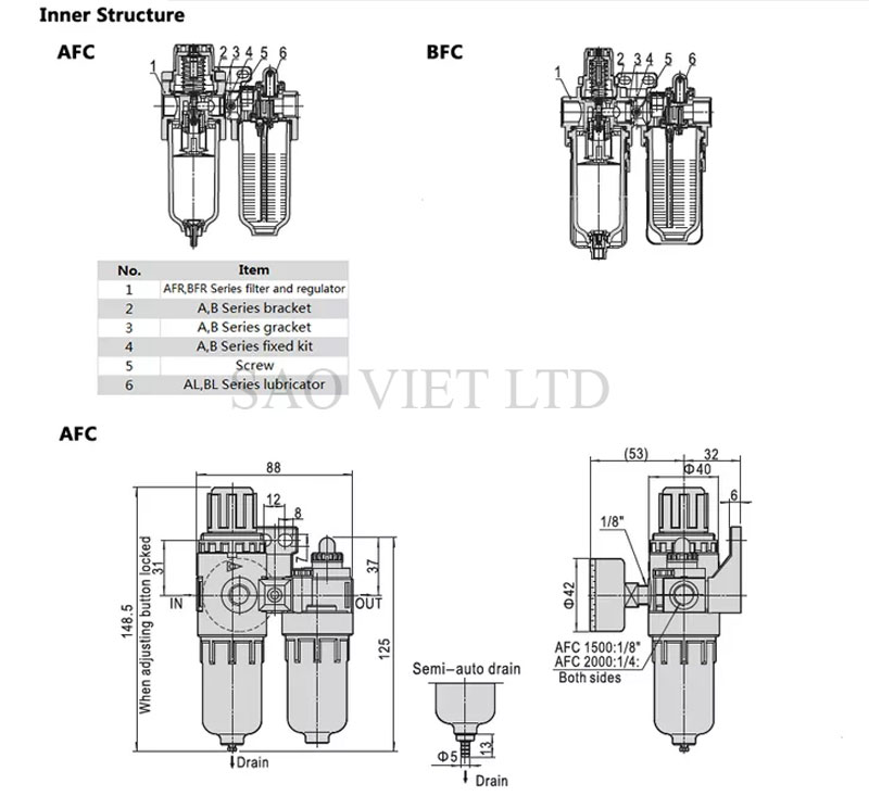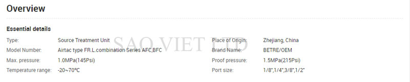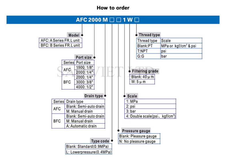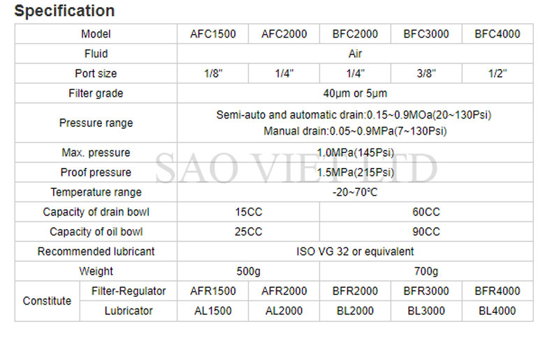 Thông Số Kỹ Thuật Bộ Lọc Khí Nén AFC