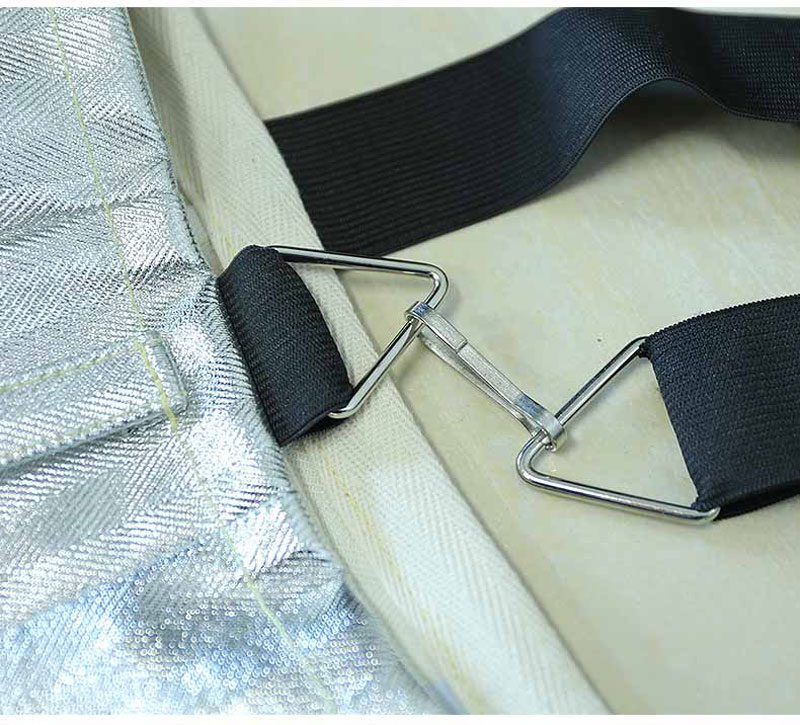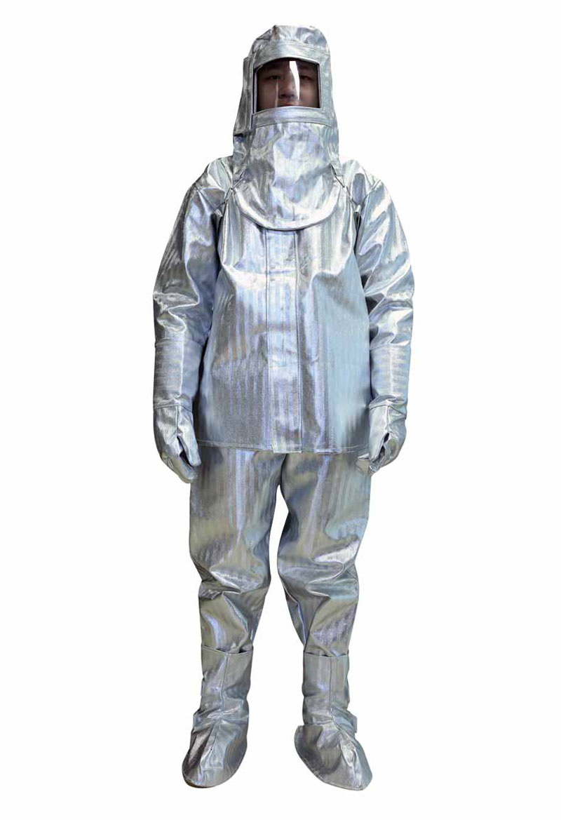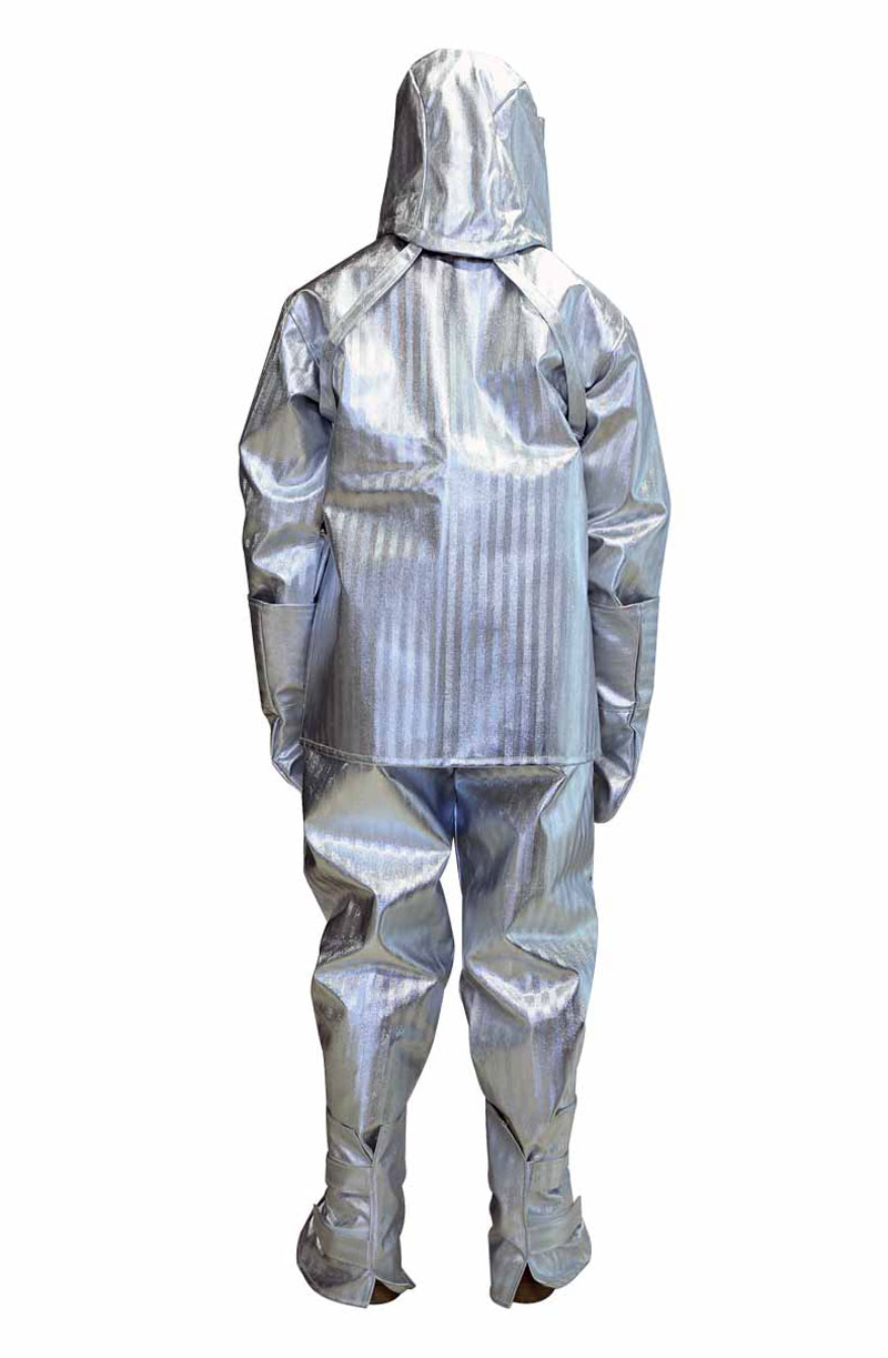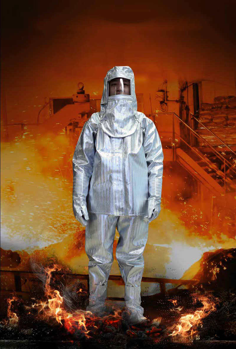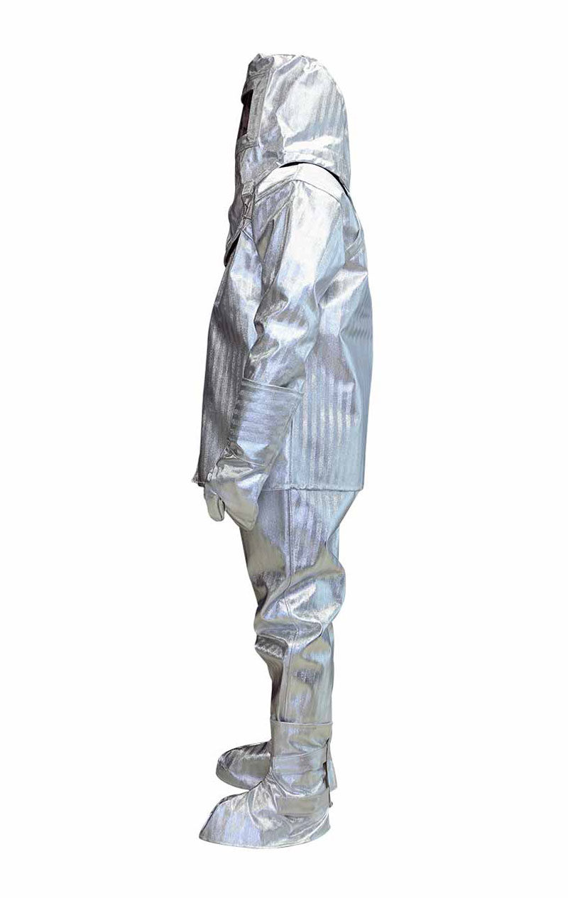 Làm bằng sợi thủy tinh tráng nhôm chống cháy không chứa amiang độc hại, chất liệu bóng chịu được nhiệt độ 1000 độ. 1 lớp tráng nhôm kỹ thuật theo kỹ thuật mới làm bộ quần áo mềm và nhẹ hơn. Quần áo gồm 2 lớp: 1 lớp tráng nhôm kỹ thuật theo kỹ thuật mới làm bộ quần áo mềm và nhẹ hơn và 1 lớp lót Aramid màu trắng bên trongChịu nhiệt: Chất liệu sần chịu được nhiệt độ 1000 độ Chất liệu: Phủ 1 lớp tráng nhôm kỹ thuật theo kỹ thuật mới làm bộ quần áo mềm và nhẹ hơn, chống hóa chất, chịu mài mòn Hạn chế lây lan ngọn lửa, thời gian cháy sau ngọn lửa là 0. Cường độ chống kéo căng > 4000N Cường độ chống xé rách > 1000g/cm3.