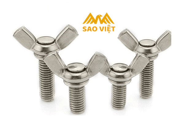 - Phần đầu bu lông inox tai hồng có dạng hai cánh cánh chuồn, chính vì vậy mà người ta còn hay gọi bu lông inox tai hồng là bu lông inox tai chuồn. Hai cánh này có tác dụng là khi thi công có thể dùng tay để siết mà vẫn tạo ra một lực siết đủ lớn, kiểu như đòn bẩy.