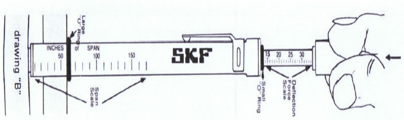 2. Định vị đáy của O-ring lớn trên thang bút tại span khi đã đo được (xem hình vẽ “B”)