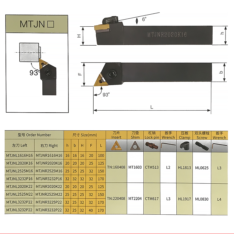 + Kích thước Cán dao tiện ghép mảnh : 16×16; 20×20; 25×25; 32x25mm.
