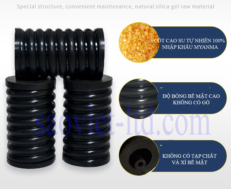 Chất liệu cao su tự nhiên hoặc cao su tổng hợp chất lượng cao, có độ đàn hồi và chịu mài mòn tốt.