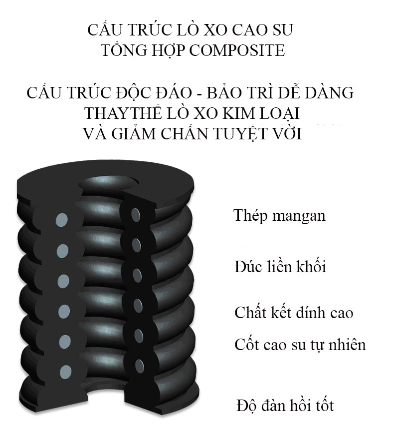 Lò xo cao su giảm chấn máy sàng, máy rung, máy tách nước là thiết bị chuyên dụng dùng để hấp thụ rung động, giảm chấn và chống va đập trong các hệ thống máy móc công nghiệp. Sản phẩm được thiết kế với cấu tạo cao su đàn hồi kết hợp với lõi cốt hoặc không lõi, phù hợp với các loại máy sàng rung, máy tách nước, máy sàng rung tuyến tính, máy ly tâm…