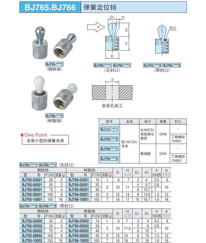 Bảng Thông Số Kỹ thuật Chốt Định Vị Lò Xo BJ 765, 766