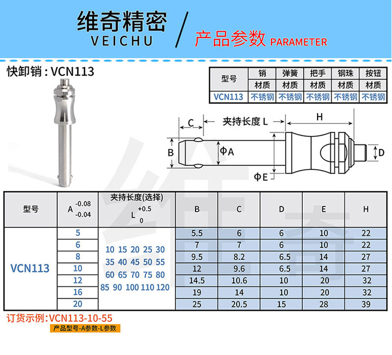 Bảng Thông Số Kỹ Thuật Chốt Khóa Có Bi Thép VCN113