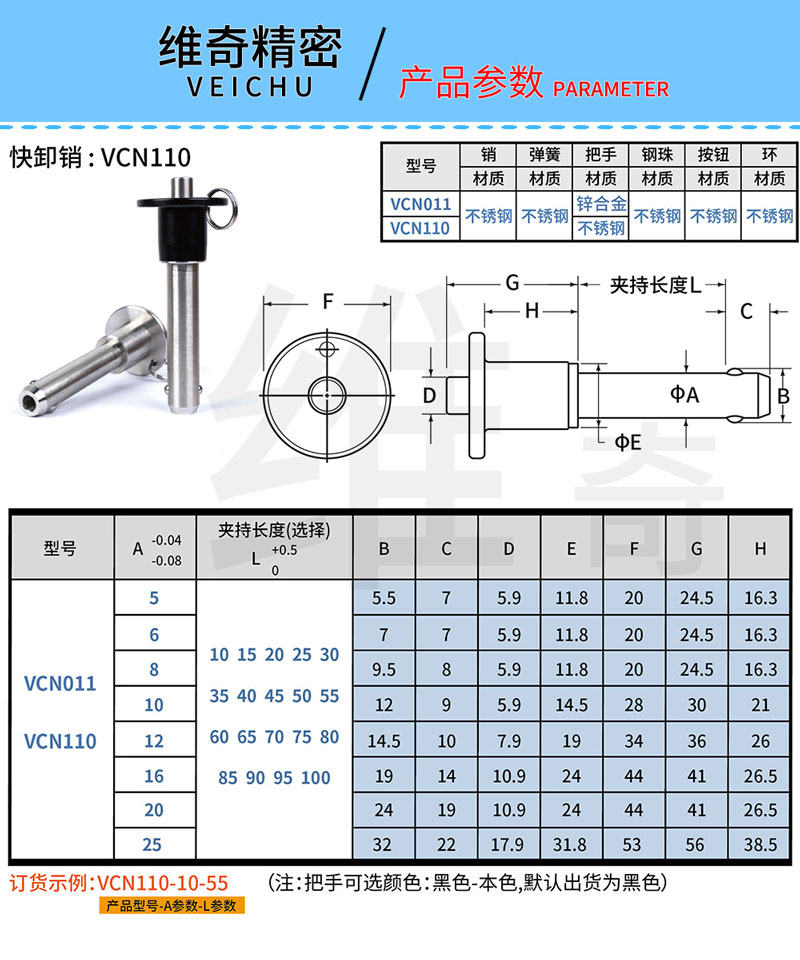Bảng Thông Số Kỹ Thuật Chốt Khóa Có Tay Kéo VCN