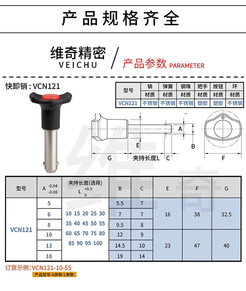 Bảng Thông Số Kỹ Thuật Chốt Khóa Đầu Núm VCN 121