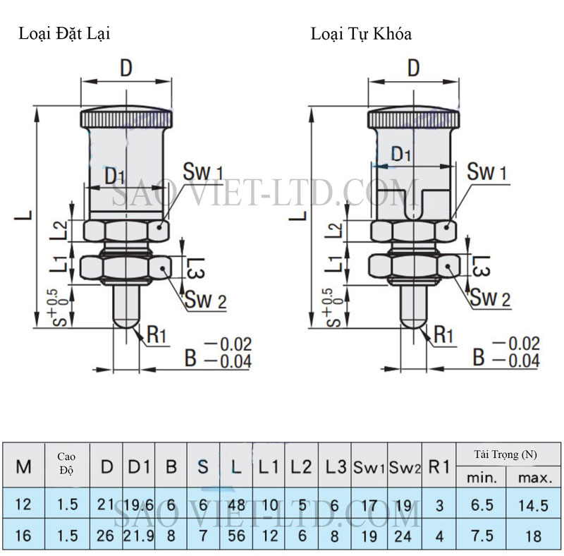 Bảng Thông Số Kỹ Thuật Chốt Pin Định Vị Núm Pittong PXRKN