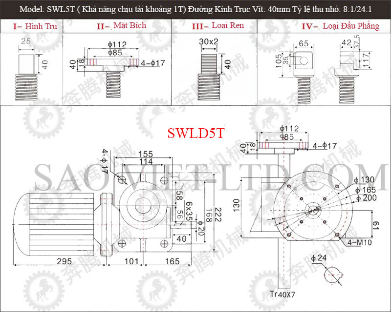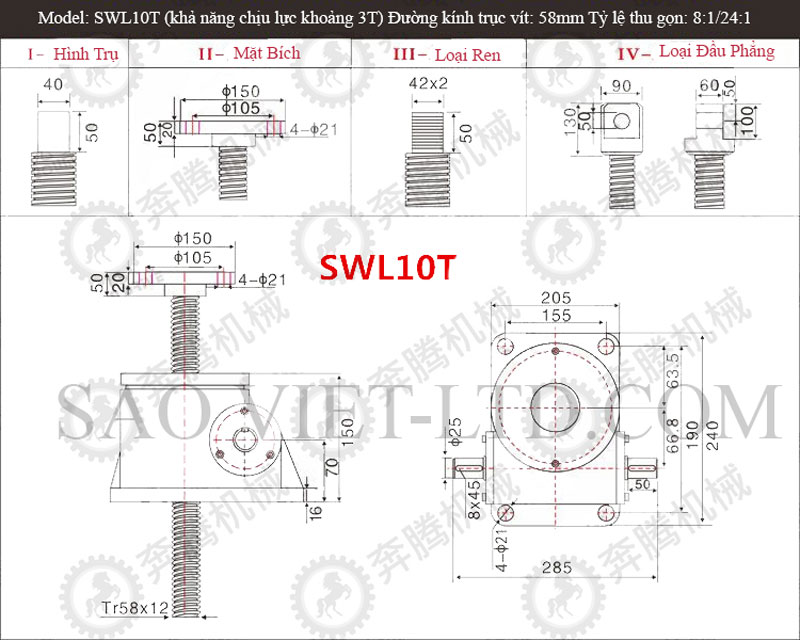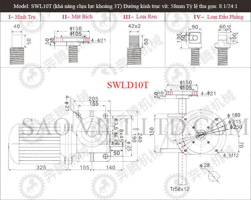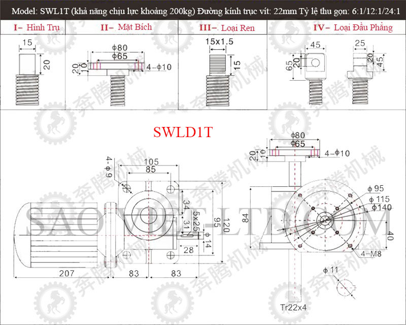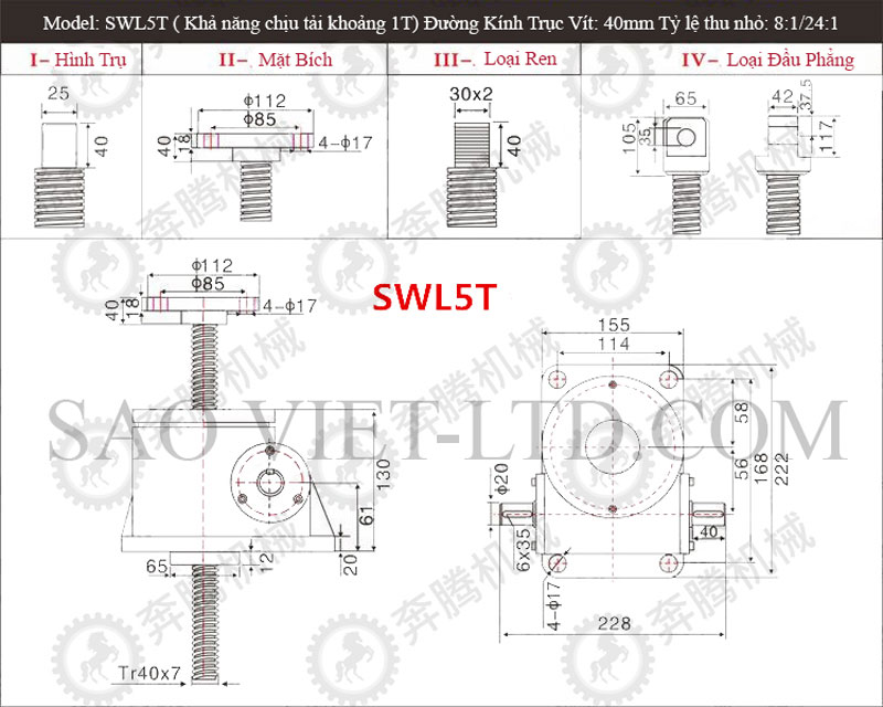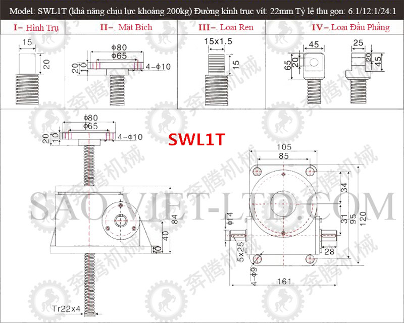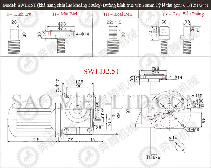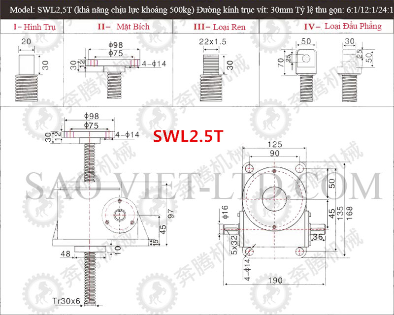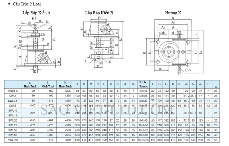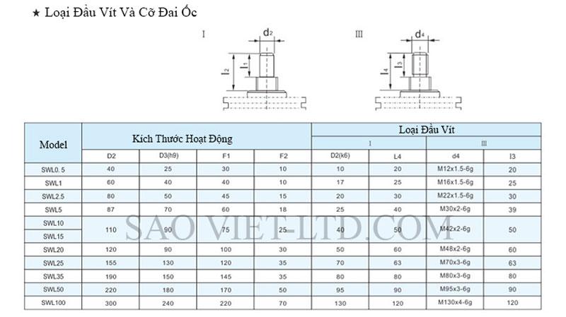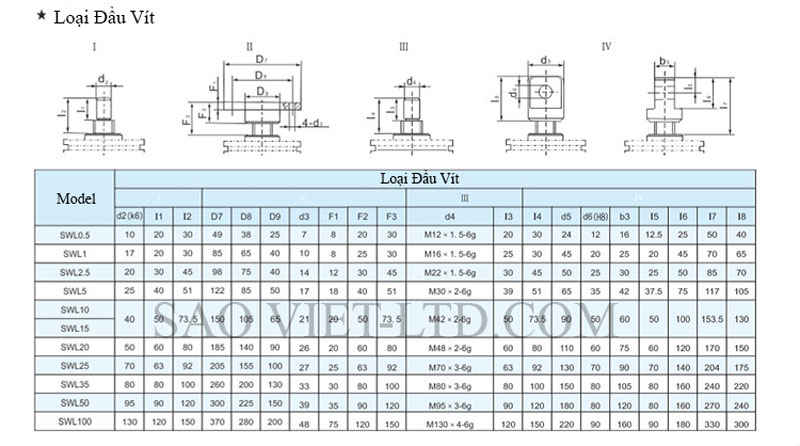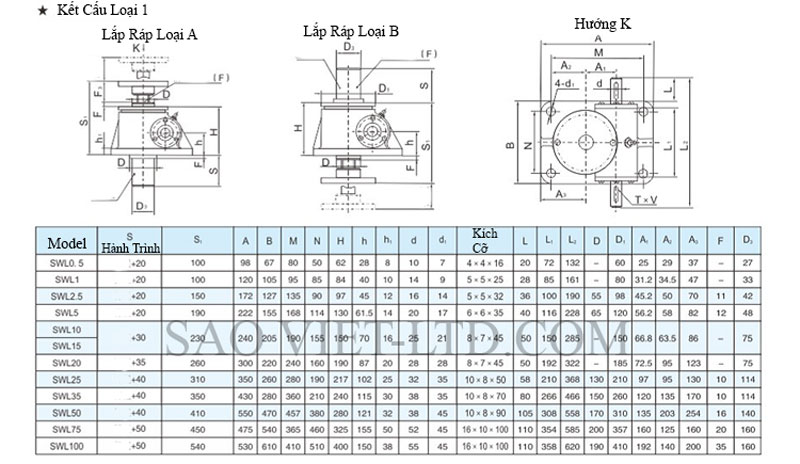 Bảng Thông Số Kỹ Thuật Cơ Cấu Nâng Hạ Bằng Vít Me SWL