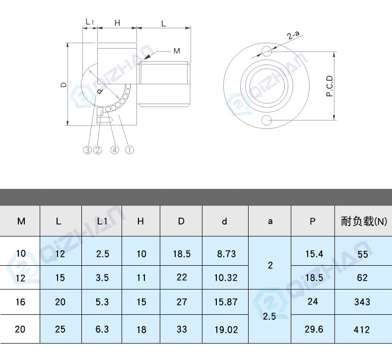 Đai ốc vít me bi hãng HIWIN đường kính trục mini kích thước tham khảo bảng thông số từ 12,16,20,25,32,40,50,63,80