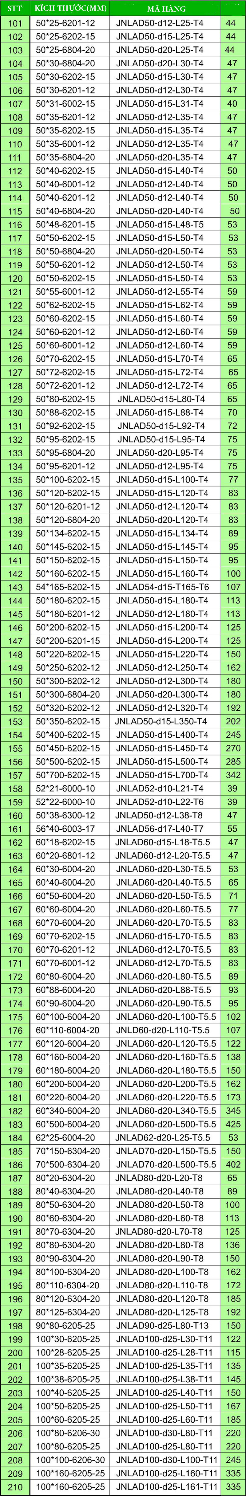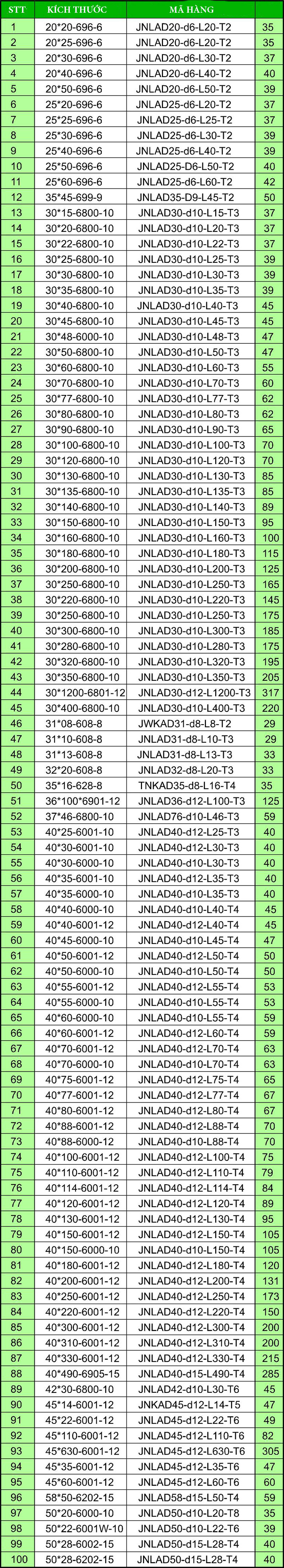 BẢNG THÔNG SỐ KÍCH THƯỚC CÁC LOẠI CON LĂN CAO SU BĂNG TẢI