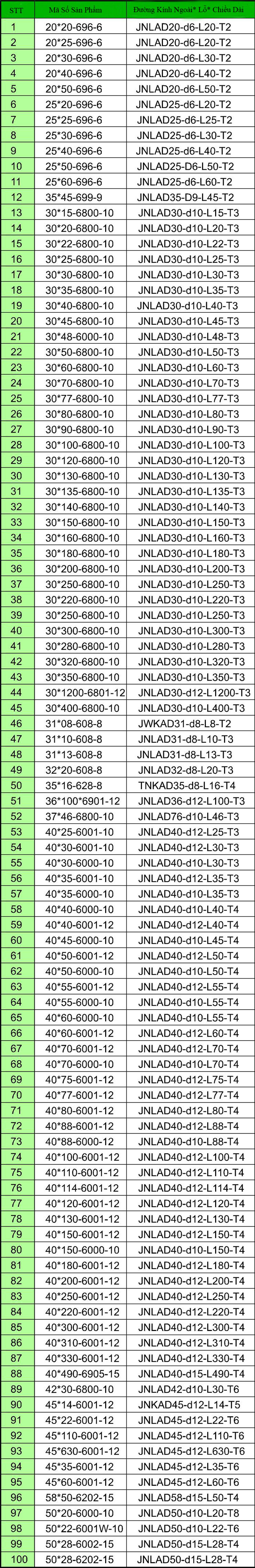 Bảng Thông Số Kỹ Thuật Con lăn cao su PU