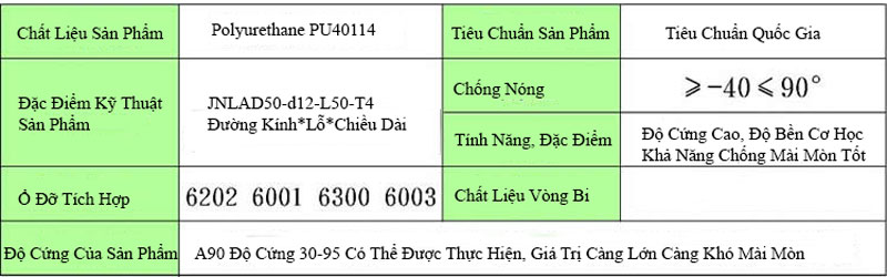 Thông Số Kỹ Thuật Con lăn cao su PU