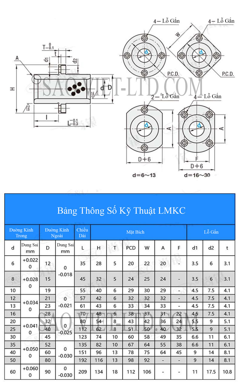 Bảng Thông Số Kỹ Thuật Con Trượt Đồng Tự Bôi Trơn LMKC
