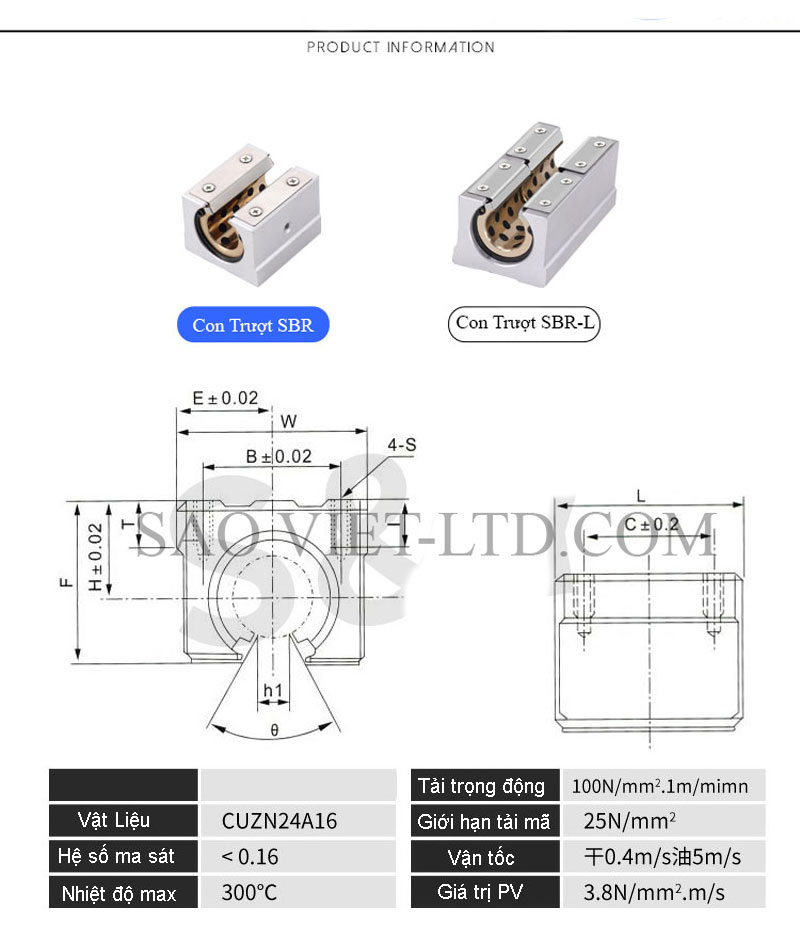 Tên Sản Phẩm: Con Trượt Đồng Tự Bôi Trơn Loại Mở SBR-OP