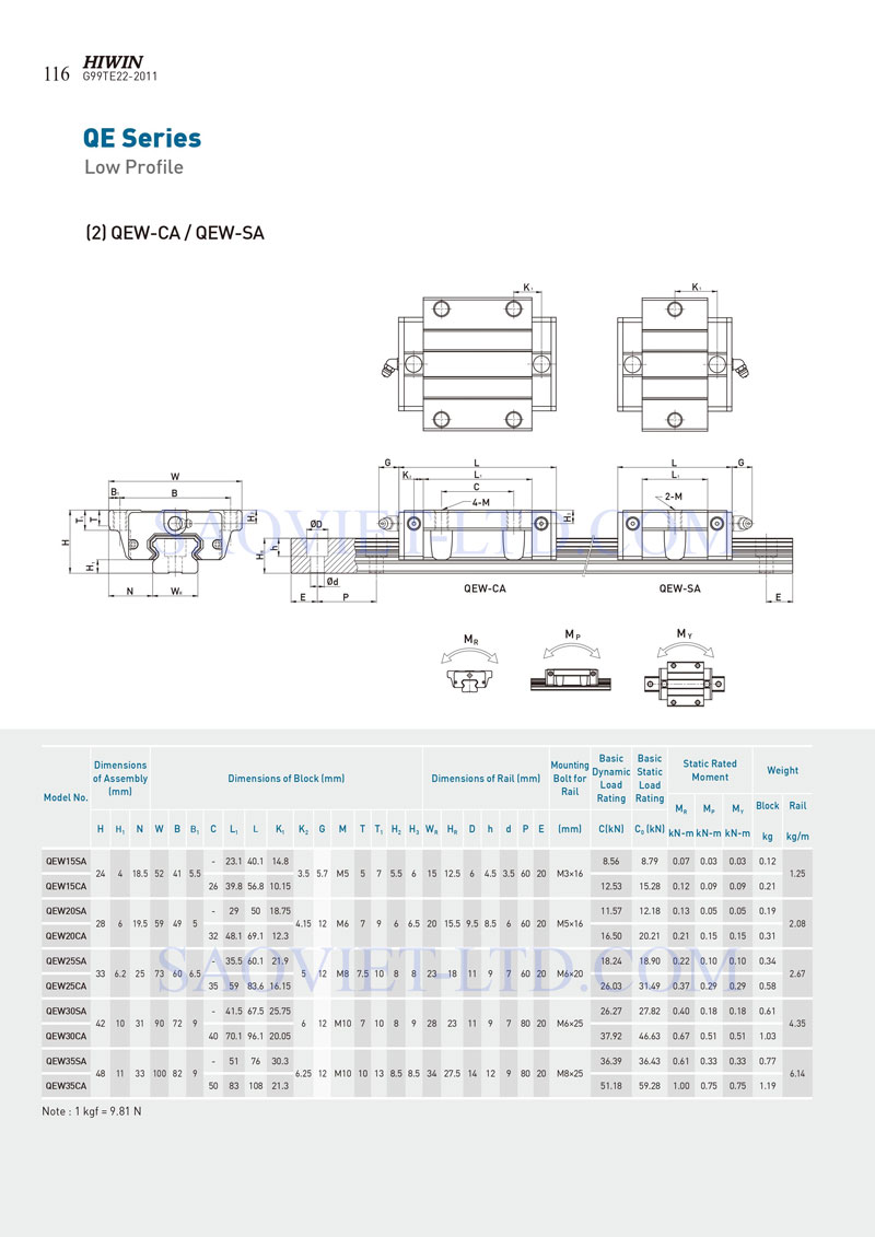 Bảng Thông Số Con Trượt Hiwin QEW15, QEW20, QEW25, QEW30, QEW35, CA, SA