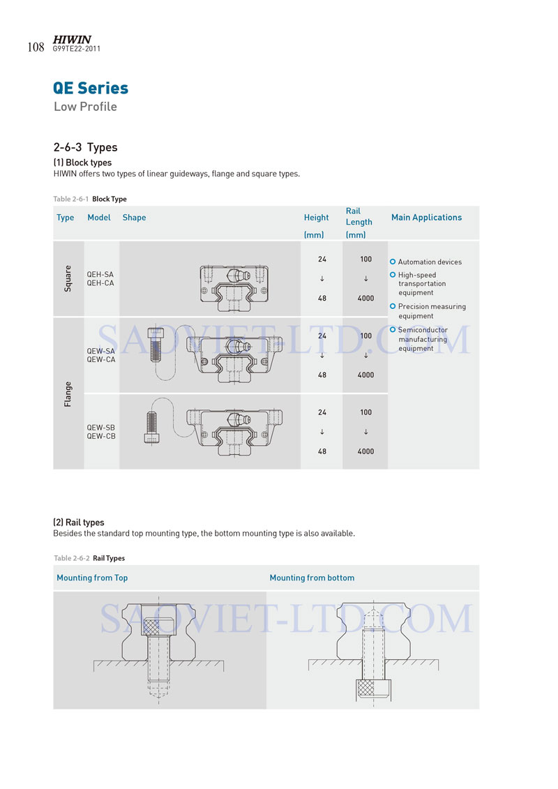 Đặc Điểm Con Trượt Hiwin QEW15, QEW20, QEW25, QEW30, QEW35, CA, SA
