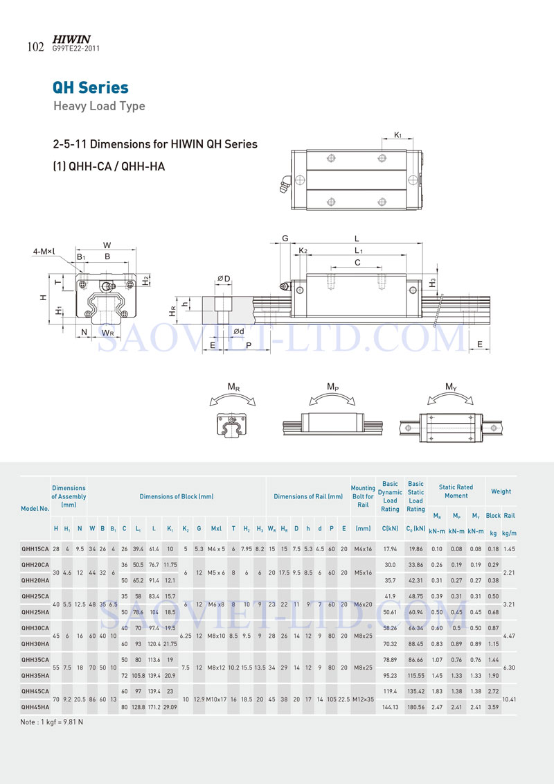 Ý nghĩa các chữ số Hiwin QEW-CA / QEW-SA