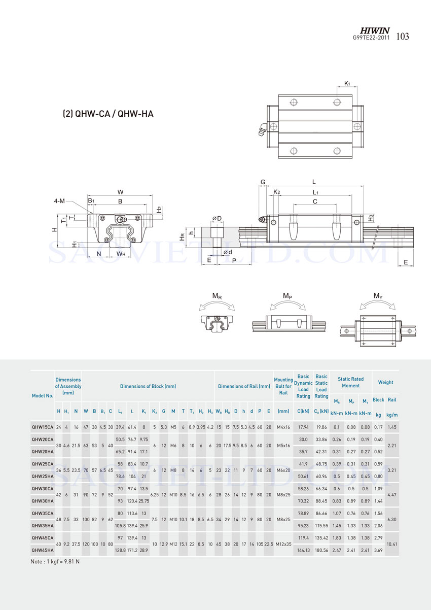 - Mã con trượt vuông Hiwin QHW-CA/QHW-HA: QHW15CA, QHW20CA, QHW25CA, QHW30CA, QHW35CA, QHW45CA